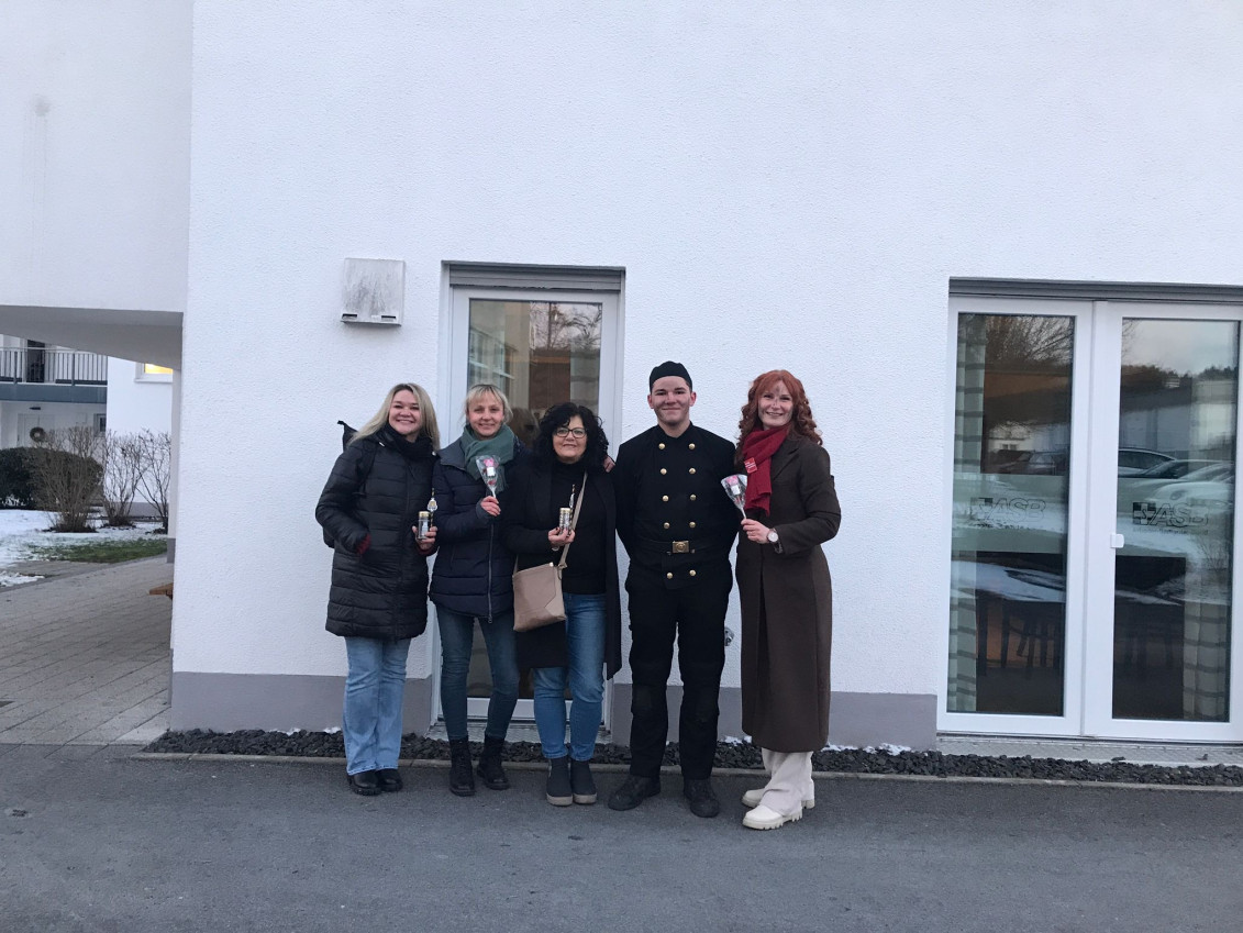 Mit Glücksschweinchen und guten Neujahrs-Wünschen im Gepäck, überraschte unsere Bürgermeisterkandidatin Melanie Bischoff gemeinsam mit Schornsteinfeger Jonas Wittmann die Bewohnerinnen und Bewohner des ASB-Wohnparks in Ebersdorf.